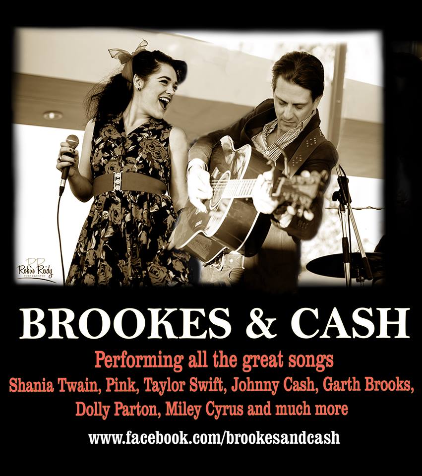 Brookes and Cash, a duo/trio performing the greatest songs ever written. Taylor Swift, Shania Twain, Johnny Cash, Zac Brown band, Dolly Parton, Kenny Rogers and much more.